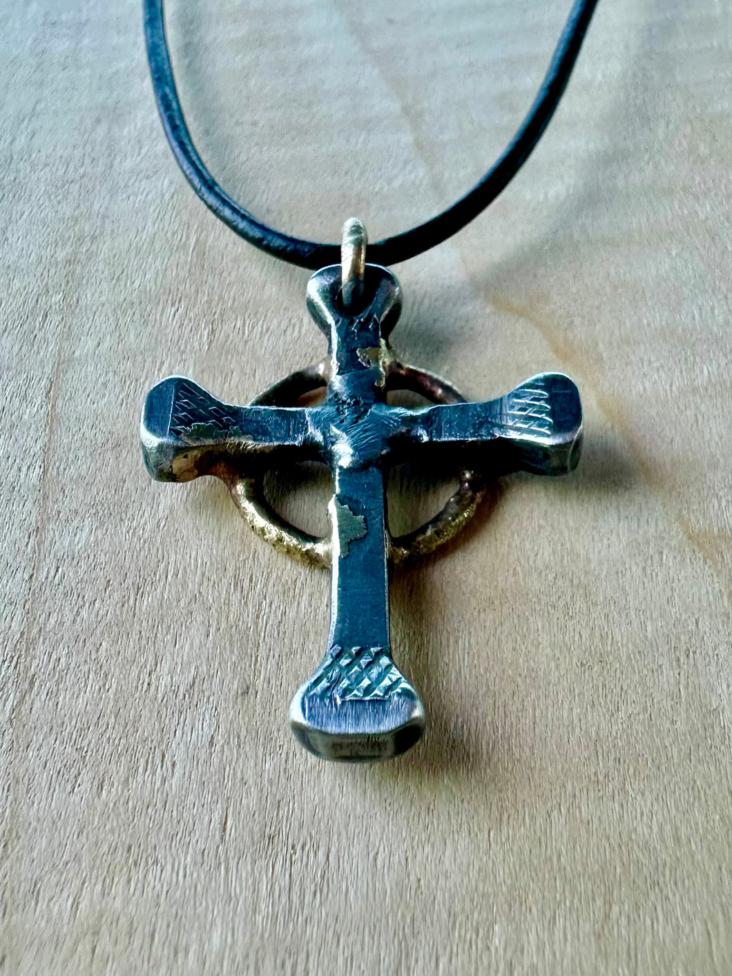 The Celtic cross necklace is masterfully welded together using carefully chosen repurposed materials. The end reveal is an organic and beautifully rustic mens, womens, or childrens cross necklace.